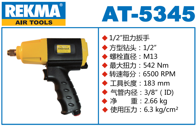 REKMA AT-5345風動板手特點:(塑鋼外殼,強度更高不變形,提高耐用度)