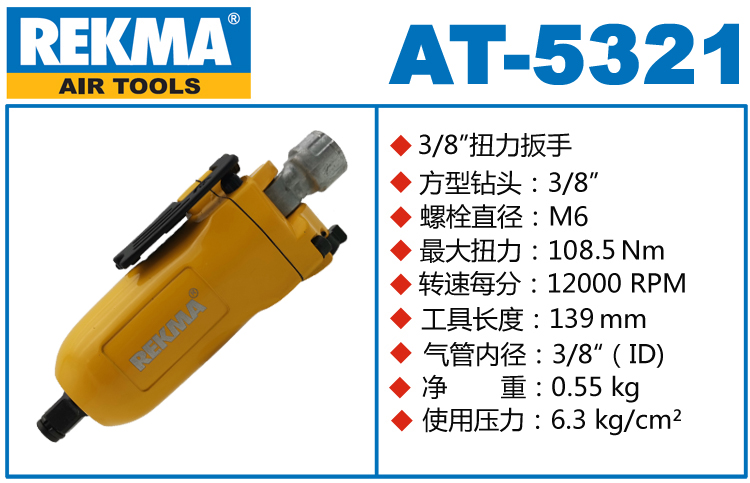 REKMA AT-5321蝶形開關(guān)氣動扳手特點:(重力壓鑄外殼,強度更高不變形,提高耐用度)