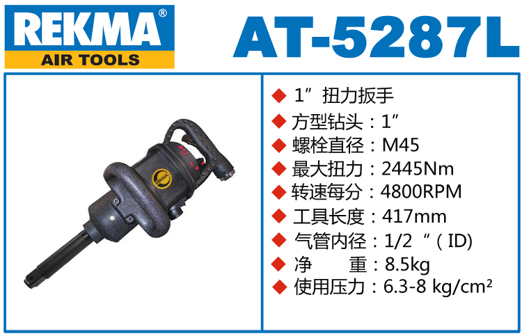 REKMA AT-5287L氣動風(fēng)炮特點:(重力壓鑄外殼,強度更高不變形,提高耐用度)